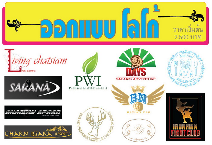 - รับออกแบบโลโก้ แบนเนอร์ เริ่มต้นที่ 2,500 บาท ราคาขึ้นอยู่กับความยากง่ายและรายละเอียดงาน