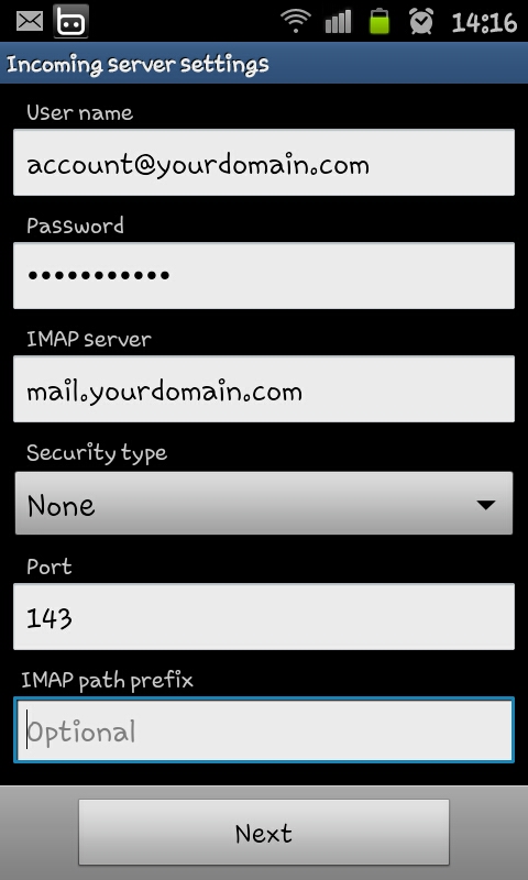 3.3 IMAP Server : ใส่ mail.yourdomain.com