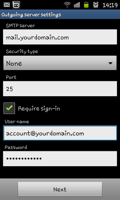 4.1 SMTP server : ใส่ mail.yourdomain.com