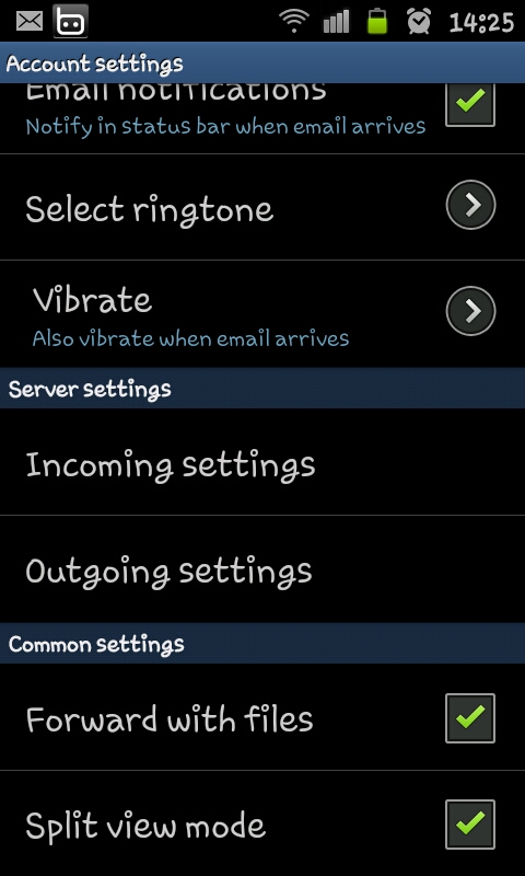 กรณีต้องการแก้ใขการตั้งค่าให้เข้าไปที่ mail ที่ต้องการแก้ใข เลือก option > More > account setting เลือกแก้ใขระหว่าง Incoming หรือ Outgoing setting
