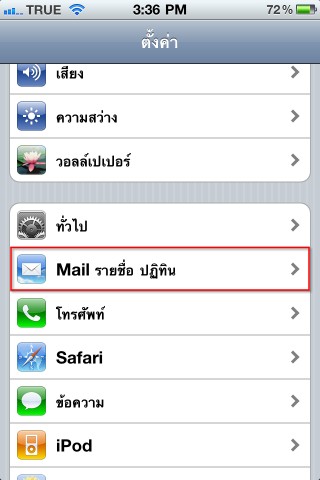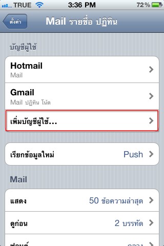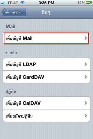 5. จากนั้นเลือก "เพิ่มบัญชี Mail" (Add Mail Account)