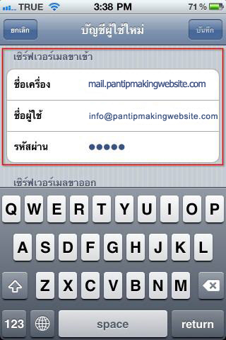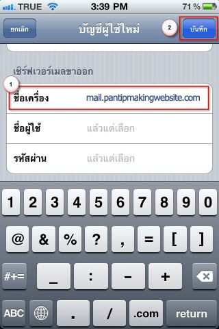 Setting > Mail > เลือก account ที่เราเพิ่งสร้างไป เช่น pantipmakingwebsite mail > info@pantipmakingwebsite.com