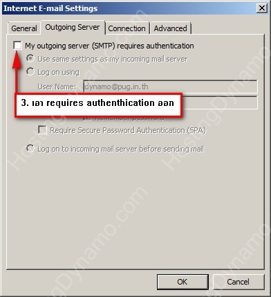 การเลือกใช้ SMTP ของผู้ให้บริการ internet เป็นการเลี่ยงใช้ SMTP จากชื่อโดเมนของท่าน เช่น mail.pug.in.th